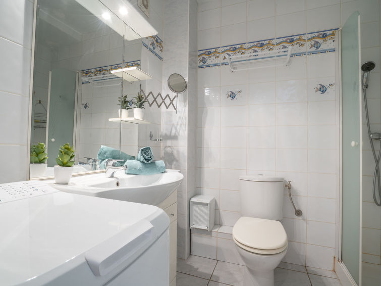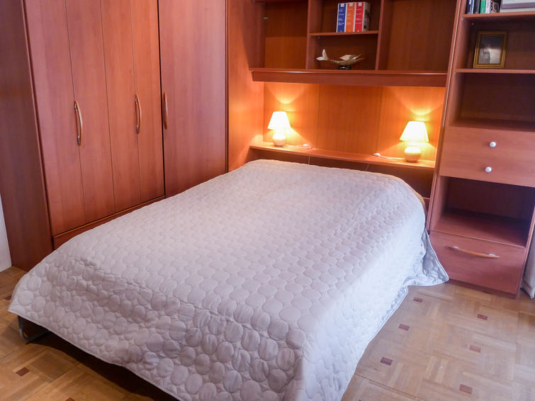 1-Zimmer-Wohnung 32 m2 im 4. Stock. Schön eingerichtet: Wohn-/Esszimmer mit 1 franz. Wandschrankbett (1 x 140 cm), TV und Stereoanlage. Ausgang zum Balkon. Küche (2 Kochplatten, Backofen, Mikrowelle, Tiefkühler). Dusche/WC. Klimaanlage. Balkon 6 m2. Zur Verfügung: Waschmaschine. 06083000844IY