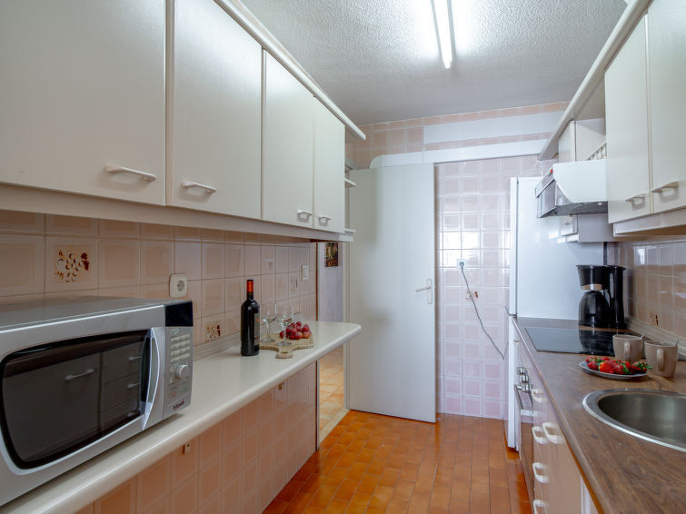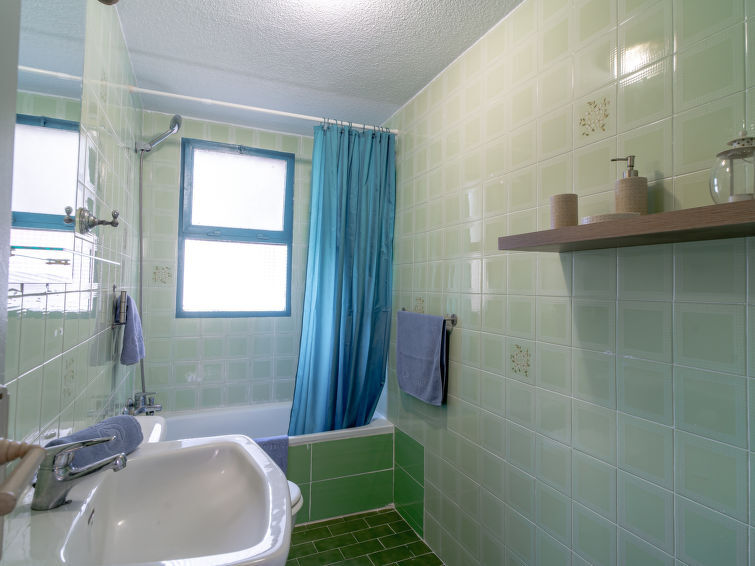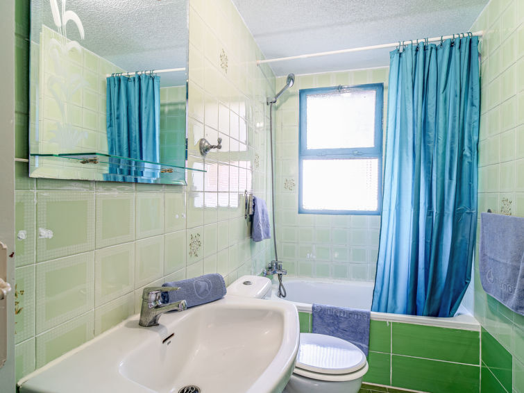 "Elomar", 4-Zimmer-Wohnung 90 m2 im 8. Stock. Komfortabel und gemütlich eingerichtet: Wohnzimmer mit Digital-TV. Ausgang zur Terrasse. 1 Zimmer mit 1 franz. Bett (150 cm, Länge 190 cm), Bad/WC, E-Heizofen und Ventilator. 1 Zimmer mit 1 Bett (90 cm), 1 Ausziehbett (2 Pers. 2 x 90 cm, Länge 190 cm), E-Heizofen und Ventilator. 1 Zimmer mit 2 Betten (90 cm, Länge 190 cm), E-Heizofen und Ventilator. Küche (Backofen, 4 Glaskeramikplatten, Toaster, Wasserkocher, elektrische Kaffeemaschine). Bad/WC. Kleine Terrasse. Terrassenmöbel. Herrliche Sicht auf das Meer. Zur Verfügung: Waschmaschine, Bügeleisen, Haartrockner. Internet (WLAN, gratis). Bitte beachten: kein Parkplatz. VUT/GR/06823
