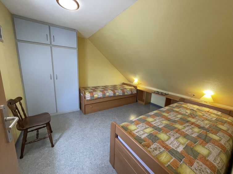 Appartement 2-kamers 54 m2 op 2 verdiepingen. Het objekt is geschikt voor 2 volwassenen + 3 kinderen. Afgeschuinde daken, mooi ingericht: hal. Keuken (oven, 4 inductiekookplaten, broodrooster, waterkoker, elektrische koffiemachine) met eettafel. Douche/WC. Olie-verwarming. Bovenverdieping: woonkamer met 1 2-pers divanbed (140 cm, lengte 200 cm), TV (Flatscreen TV). 1 kinderkamer met 3 bedden (90 cm, lengte 200 cm). Ter beschikking: wasmachine, strijkijzer, kinderstoel, kinderbed tot 2 jaar. Internet (Internet (WiFi), gratis). Parkeerplaats. Geschikt voor families. Niet rokers woning. Privé ingang. Boekingen zijn alleen voor vakantiedoeleinden toegestaan.
