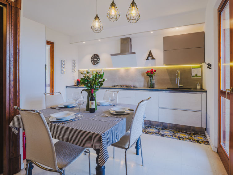 "Casa Lorena", halfvrijstaand huis 4-kamers 140 m2, op de begane grond. Ruim en licht, volledig gerenoveerd, zeer comfortabel en modern ingericht: woonkamer met TV (Flatscreen TV). Uitgang naar de tuin, naar het zwembad. Open keuken (5-pits kookplaat, oven, Gasfornuis, broodrooster, waterkoker, elektrische koffiemachine) met eettafel. Uitgang naar het terras. Douche/bidet/WC. Gas-verwarming, air-conditioning. Verwarming alleen beschikbaar van 01.11. tot 15.04. Souterrain: groot woon-/eetkamer met 1 2-pers divanbed en open haard (alleen decoratie), eettafel, kookhoek en TV (Flatscreen TV). Bovenverdieping: 2 2-pers. kamers, elke kamer heeft air-conditioning. Uitgang naar het balkon. Douche/bidet/WC. Klein terras, kleine tuin. Terrasmeubelen, barbecue (verrijdbaar), ligstoelen, zitgelegenheid. Zeer mooi panoramazicht op zee en het dal. Ter beschikking: wasmachine, droger, strijkijzer, haardroger. Internet (Internet (WiFi), gratis). Parkeerplaats (overdekt, omheind, 1 Auto). Geschikt voor families. Rookvrij huis. Rookmelders, brandblusser. IT046018C2IVD8GYP9