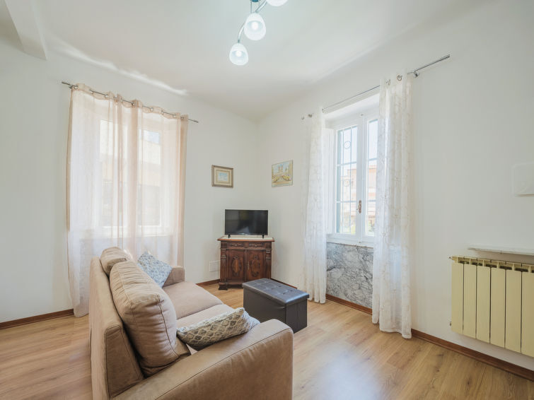 Appartement 2-kamers op de 1e verdieping. Mooi en gezellig ingericht: open woonkamer met TV en Flatscreen TV. 1 2-pers. kamer met ventilator. Open keuken (oven, afwasmachine, 4 kookpitten (vlammen), broodrooster, magnetron, elektrische koffiemachine) met eettafel. Uitgang naar het terras. Douche/bidet/WC. Geen verwarmingsmogelijkheid. Groot terras 30 m2. Terrasmeubelen, ligstoelen (2). Ter beschikking: wasmachine, strijkijzer, haardroger. Internet (WiFi). Niet rokers woning. Privé ingang, rookmelders, brandblusser. IT045010C2XEWKSNNO