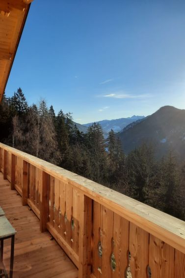"Ferienwohnung Alpenauszeit", appartement 3-kamers 135 m2. Ruim en licht, smaakvol en gezellig ingericht: hal. 1 2-pers. kamer met douche/WC, Sat-TV, internationale TV-zenders en Flatscreen TV. Groot woonkeuken (oven, afwasmachine, 4 keramische glas kookplaten, broodrooster, waterkoker, magnetron, diepvriezer, elektrische koffiemachine) met eethoek, Sat-TV, internationale TV-zenders en Flatscreen TV. Aparte WC. Bovenverdieping: 1 2-pers. kamer met douche/WC, Sat-TV, internationale TV-zenders en Flatscreen TV. Houten vloeren, natuurstenen vloeren. Groot balkon. Balkonmeubilair. Zeer mooi panoramazicht op de bergen en het landschap. Ter beschikking: strijkijzer, kinderstoel, kinderbed tot 2 jaar, haardroger. Internet (Internet (WiFi), gratis). Rookvrij huis. Rookmelders, brandblusser. 50417-000481-2022