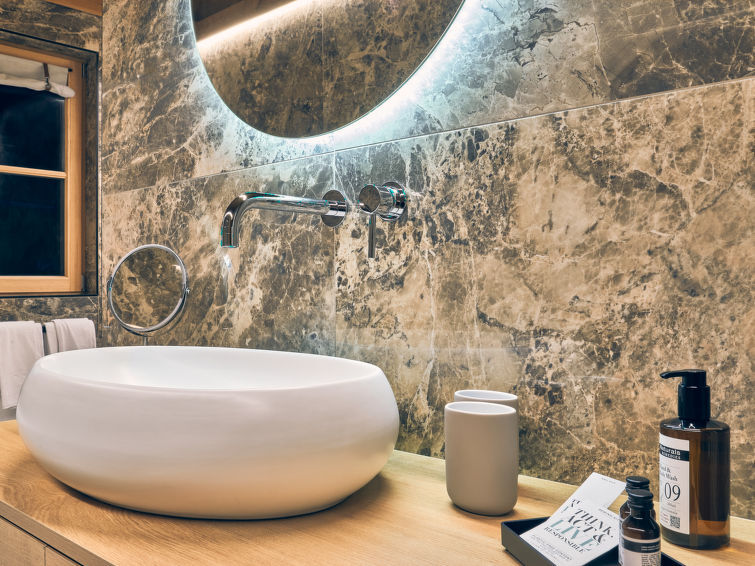 "Sissis Green Chalets/Kaiser Max", chalet 4-kamers 150 m2 op 2 verdiepingen. Luxueus en met veel hout ingericht: hal. 1 2-pers. kamer met douche/WC, TV en Digitale TV (Flatscreen TV). Groot woonkeuken (afwasmachine, 4 inductiekookplaten, broodrooster, waterkoker, magnetron, elektrische koffiemachine, kookeiland) met eettafel, open haard, TV en Digitale TV (Flatscreen TV), elektrische rolluiken. Uitgang naar het terras. Bovenverdieping: 2 2-pers. kamers, elke kamer heeft bad/douche/WC, TV en Digitale TV (Flatscreen TV). Uitgang naar het balkon. Groot terras 25 m2. Terrasmeubelen, barbecue, ligstoelen. Mooi uitzicht op de bergen. Ter beschikking: wasmachine, sauna, haardroger. Internet (WiFi, gratis). Parkeerplaats. Rookvrij huis. Maximaal 2 huisdieren/honden toegestaan. Privé ingang.