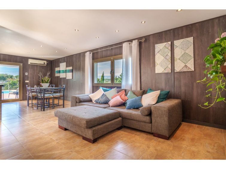 "Son Alcaines Sineu", huis 3-kamers 150 m2 op 2 verdiepingen, op het noordwesten gelegen. Het objekt is geschikt voor 4 volwassenen. Licht, comfortabel en mooi ingericht: woon-/eetkamer met Digitale TV, internationale TV-zenders en air-conditioning. Uitgang naar het terras, naar het zwembad. Woonkeuken (oven, afwasmachine, 1 keramische glas kookplaat, 4 kookpitten (vlammen), broodrooster, waterkoker, magnetron, elektrische koffiemachine) met eettafel, Digitale TV, internationale TV-zenders en air-conditioning. Uitgang naar het terras, naar het zwembad. Douche/WC. Elektrische verwarming. Bovenverdieping: 1 groot 2-pers. kamer met panoramavenster met 1 2-pers bed (1 x 150 cm, lengte 190 cm), douche/WC, Digitale TV, internationale TV-zenders en air-conditioning. 1 2-pers. kamer met panoramavenster met 2 bedden (90 cm, lengte 190 cm), douche/WC, Digitale TV, internationale TV-zenders en air-conditioning. Terrasmeubelen, barbecue (verrijdbaar), ligstoelen (4), loggia. Panoramazicht op het zwembad. Ter beschikking: wasmachine, strijkijzer, kinderstoel, kinderbed tot 2 jaar, haardroger. Internet (WiFi, gratis). Geschikt voor families. Het zwembad genoemd in de beschrijving is voor privé gebruik. ETV5345