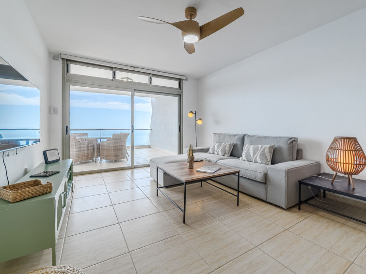 "Punta del Sol", appartement 3-kamers 110 m2 op de 1e verdieping. Het objekt is geschikt voor 4 volwassenen. Ruim en licht, doelmatig en comfortabel ingericht: woon-/eetkamer met Digitale TV en ventilator. Uitgang naar het balkon. 1 kamer met 1 2-pers bed (1 x 150 cm, lengte 190 cm), Digitale TV en ventilator. 1 kamer met 1 2-pers bed (1 x 150 cm, lengte 190 cm), ventilator. Keuken (oven, 4 keramische glas kookplaten, broodrooster, waterkoker, magnetron, elektrische koffiemachine). 2 douche/WC's. Geen verwarmingsmogelijkheid. Groot balkon. Terrasmeubelen. Zeer mooi uitzicht op zee. Ter beschikking: wasmachine, strijkijzer, haardroger. Internet (WiFi, gratis). Parkeerplaats nr. 13 (overdekt). Geschikt voor families. Niet rokers woning. Brandblusser. VV-38-4-0113161