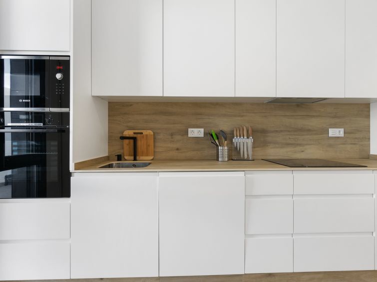 "Tropical Beach Penthouse", dakappartement 3-kamers 64 m2 op de 1e verdieping. Doelmatig en comfortabel ingericht: groot woon-/eetkamer met 1 2-pers divanbed (140 cm, lengte 190 cm), air-conditioning en heteluchtverwarming. Uitgang naar het balkon. 1 kamer met 1 2-pers bed (150 cm, lengte 190 cm), douche/WC, air-conditioning en heteluchtverwarming. 1 kamer met 1 2-pers bed (150 cm, lengte 190 cm), air-conditioning en heteluchtverwarming. Open keuken (oven, afwasmachine, 4 keramische glas kookplaten, waterkoker, magnetron, diepvriezer, elektrische koffiemachine). Douche/WC. Balkon, groot terras 80 m2. Terrasmeubelen, ligstoelen. Uitzicht op de plaats. Ter beschikking: wasmachine, strijkijzer, kinderstoel, kinderbed tot 2 jaar, haardroger. Internet (WiFi, gratis). Geschikt voor families. Niet rokers woning. Geen lift. VV.MU.4442-1 // Reg. Nr.: ESFCTU0000300320008092230000000000000000VV/MU/4442-10