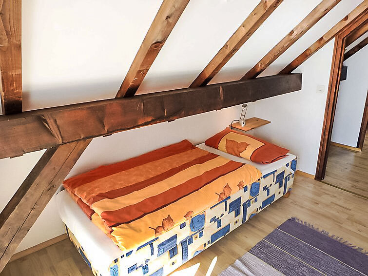 Huis 4-kamers 105 m2 op 2 verdiepingen, op de begane grond. Groot woon-/eetkamer 50 m2 met Sat-TV en radio. Uitgang naar het balkon. 1 2-pers. kamer. Kookhoek (oven, afwasmachine, magnetron, elektrische koffiemachine). Bad/douche/WC. Bovenverdieping: 1 kamer met afgeschuinde daken met 1 bed en 1 2-pers bed. 1 2-pers. kamer met afgeschuinde daken. 2 balkons, gazon. Balkonmeubilair, barbecue (verrijdbaar). Ter beschikking: kinderstoel. Internet (Internet (WiFi), gratis). Vrijstaand huis. Toegang tot de bovenverdieping via een lepeltrap. Entree, met afsluitbaar voorhuis als bergruimte voor ski- en wandeluitrusting.