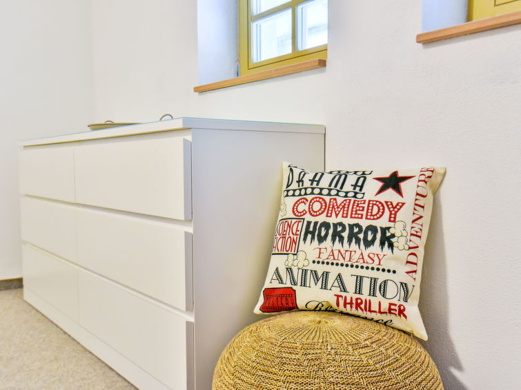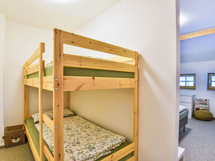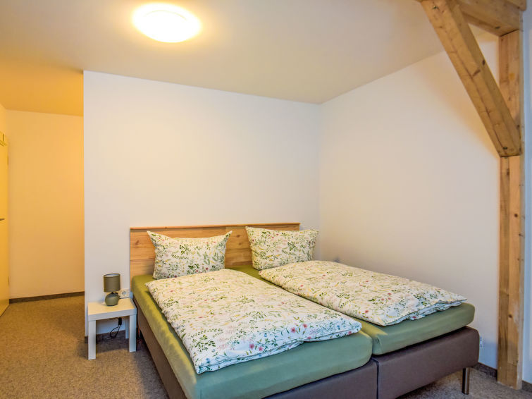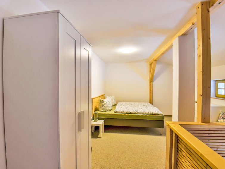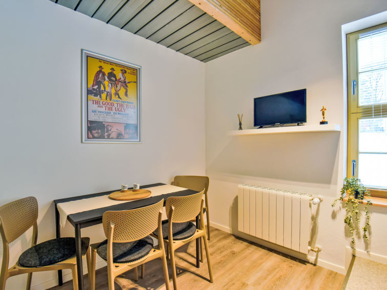 "Clint", appartement 2-kamers 36 m2 op 2 verdiepingen. Volledig gerenoveerd in 2023, doelmatig en modern ingericht: woonkeuken (2 keramische glas kookplaten, broodrooster, waterkoker, magnetron, elektrische koffiemachine) met eettafel en Sat-TV (Flatscreen TV). Douche/WC. Bovenverdieping: met afgeschuinde daken, 1 groot kamer met 1 x 2 stapelbedden (90 cm, lengte 200 cm), 1 2-pers bed (180 cm, lengte 200 cm). Verwarming. Ter beschikking: kinderstoel, kinderbed. Internet (WiFi, gratis). Niet rokers woning. Maximaal 1 huisdier/hond toegestaan. Rookmelders, brandblusser.