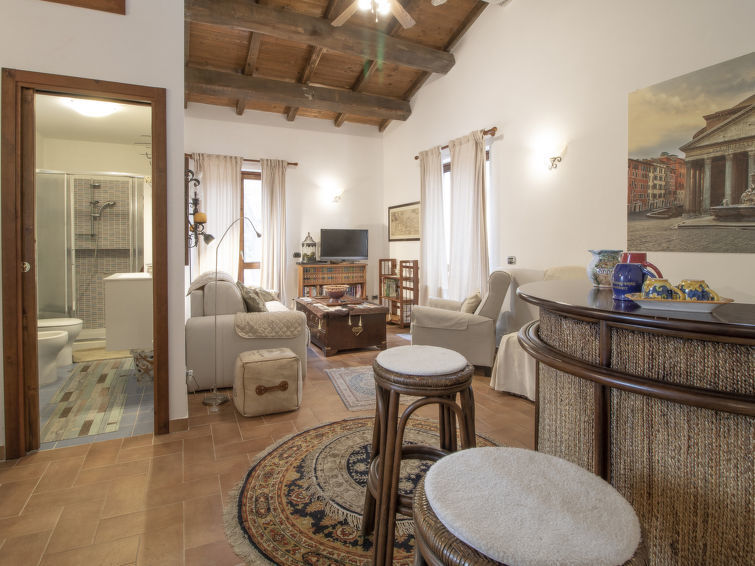 Mooi, comfortabele cottage "Olive Grove Sabina", van 2 verdiepingen. Huurobject bestaande uit hoofd-/ bijgebouw, in het gehucht Canneto, 10 km van het centrum van Passo Corese, geïsoleerde, rustige, zonnige ligging, te midden van groen. Voor alleengebruik: terrein 1 ha (omheind), tuin 1 ha (omheind) met bomen, openluchtzwembad (8 x 4 m, 120 - 120 cm diepte, seizoensgebonden beschikbaarheid: 01.Jun. - 30.Sep.) met zout-elektrolyse. Douche/WC bij het zwembad, buitendouche, tafeltennis, patio, prieel, prieel, terras, tuinmeubelen, barbecue, stookplaats. Smalle toegangsweg tot aan het huis (500 m onverharde weg). Winkel 1 km, levensmiddelenwinkel 2 km, supermarkt 2 km, bar 2 km, café 2 km, bushalte 1 km, treinstation "Fara Sabina FL1 - to Roma" 10 km. Attracties in de buurt: Roma 45 km, Rieti 30 km, Orvieto 70 km, Tivoli 40 km. Bekende meren kunnen gemakkelijk worden bereikt: Lago del Turano 30 km, Lago di Bracciano 40 km. Auto noodzakelijk. De eigenaar accepteert geen jeugdgroepen. Gesloten residentie met een elektrische deur.