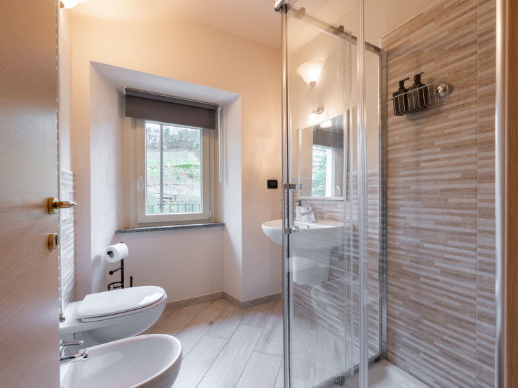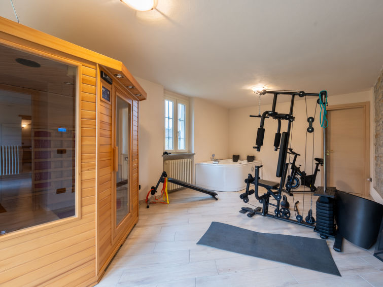 17-kamers cottage op 3 verdiepingen. Smaakvol ingericht: woon-/eetkamer met open haard, eettafel en TV. Uitgang naar het terras. Salon met open haard, aparte WC en TV. Uitgang naar de tuin. Woon-/slaapkamer met 1 2-pers divanbed, eettafel, kookhoek en TV. Uitgang naar de tuin. 1 2-pers. kamer met douche/bidet/WC. Keuken (oven, afwasmachine, 5 kookpitten (vlammen), pizzaoven). Douche/bidet/WC. Bovenverdieping: woon-/slaapkamer met 1 2-pers divanbed, eettafel, kookhoek en TV. Uitgang naar het balkon. Woon-/slaapkamer met 1 2-pers divanbed, eettafel, kookhoek en TV. Uitgang naar het balkon. Woon-/slaapkamer met 1 2-pers divanbed, eettafel, kookhoek en TV. Woon-/slaapkamer met 1 2-pers divanbed, eettafel, kookhoek en TV. 4 2-pers. kamers. Open galerij met afgeschuinde daken met 1 2-pers bed. Open galerij met afgeschuinde daken met 1 2-pers bed. 4 douche/bidet/WC's. Zolderverdieping: (wenteltrap) woon-/eetkamer met 2 2-pers divanbedden, open haard, eettafel en TV. Uitgang naar het terras. 2 2-pers. kamers met afgeschuinde daken, hoogte van het plafond 160 - 270 cm. Kookhoek (4-pits kookplaat, oven, afwasmachine, magnetron, elektrische koffiemachine). Douche/bidet/WC. Gas-verwarming. Verwarming alleen beschikbaar van 15.10. tot 15.04. Balkon, 2 terrassen, gedeeltelijk overdekt. Ter beschikking: wasmachine, kinderbed tot 2 jaar, haardroger. Internet (WiFi, gratis). Maximaal 1 huisdier/hond toegestaan. Rookmelders, brandblusser. IT005060B54CFBNQE4