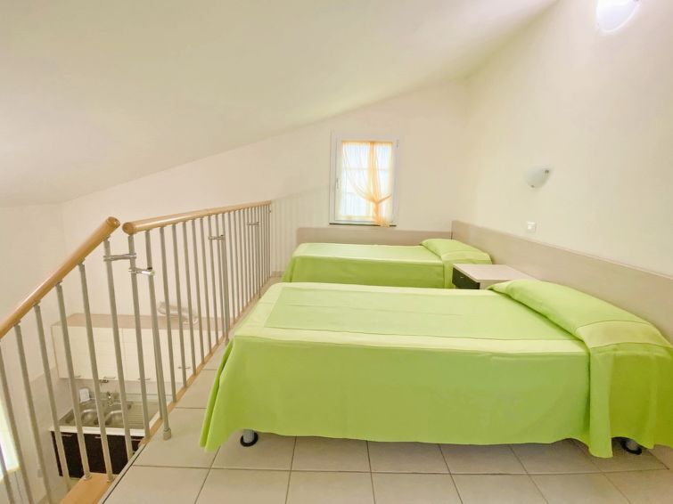 "Ponente", appartement 2-kamers 56 m2. Comfortabel en modern ingericht: woon-/eetkamer met 1 divanbed en douche/bidet/WC. Uitgang naar de tuin. 1 2-pers. kamer. Kookhoek (magnetron, diepvriezer) met Sat-TV en air-conditioning. Bovenverdieping: galerij met 2 bedden. Zithoek in de tuin. Terrasmeubelen. Ter beschikking: kluis, haardroger. Internet (Internet (WiFi), gratis). Parkeerplaats nr. 1. In plaats van een afgesloten slaapkamer bevinden sommige slaapgedeeltes zich in een open ruimte (galerij, nis, etc.). IT049017A1E5UJE9V7